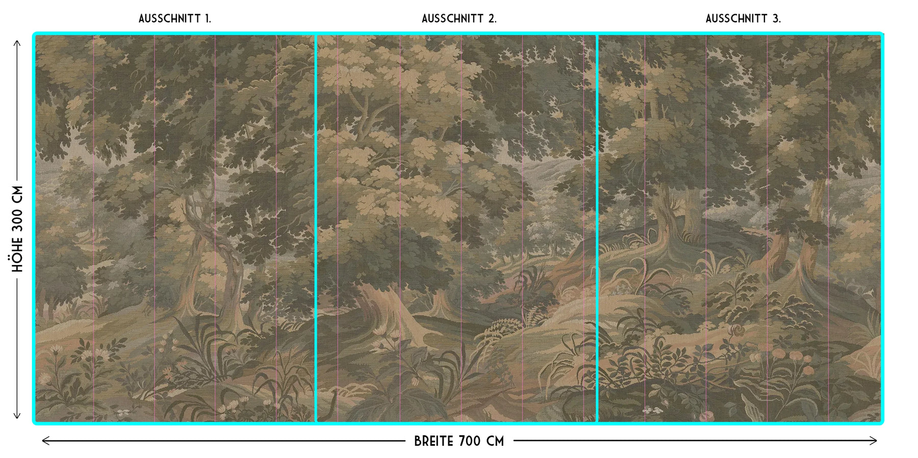 Die genaue Bahnenanzahl richtet sich nach deinen gewählten Wandmaßen – so entsteht ein perfekt abgestimmtes Gesamtbild.