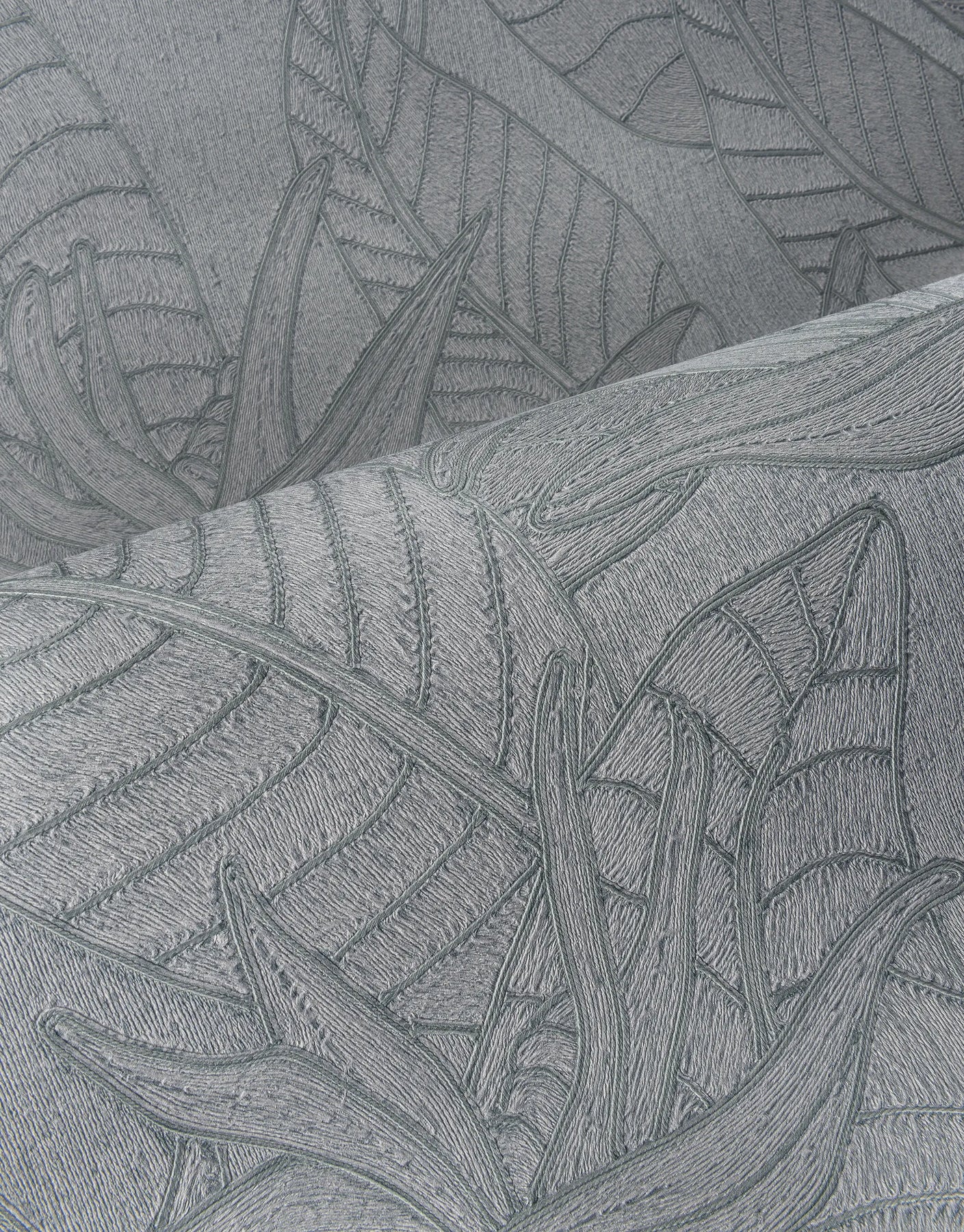 Ubud ist eine Premium-Vinyltapete auf Papier, die die anmutigen Formen der Paradiesvogelblume meisterlich inszeniert. Die Blüten und Blätter wurden ursprünglich in akribischer Handarbeit mit feinen Fäden gestaltet und anschließend in ein hochwertiges Vinyl-Muster übertragen, das die reliefartige Struktur lebendig wiedergibt.