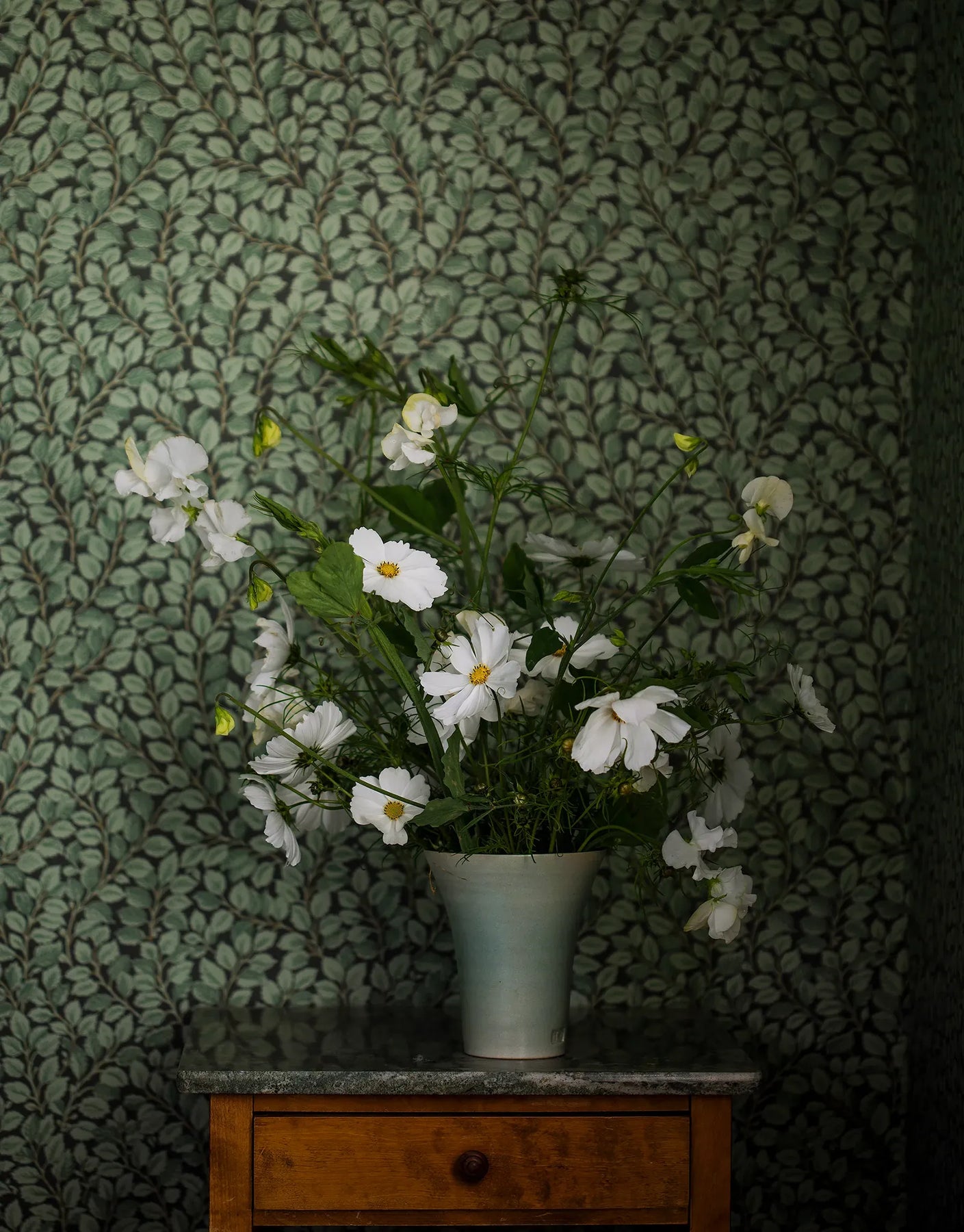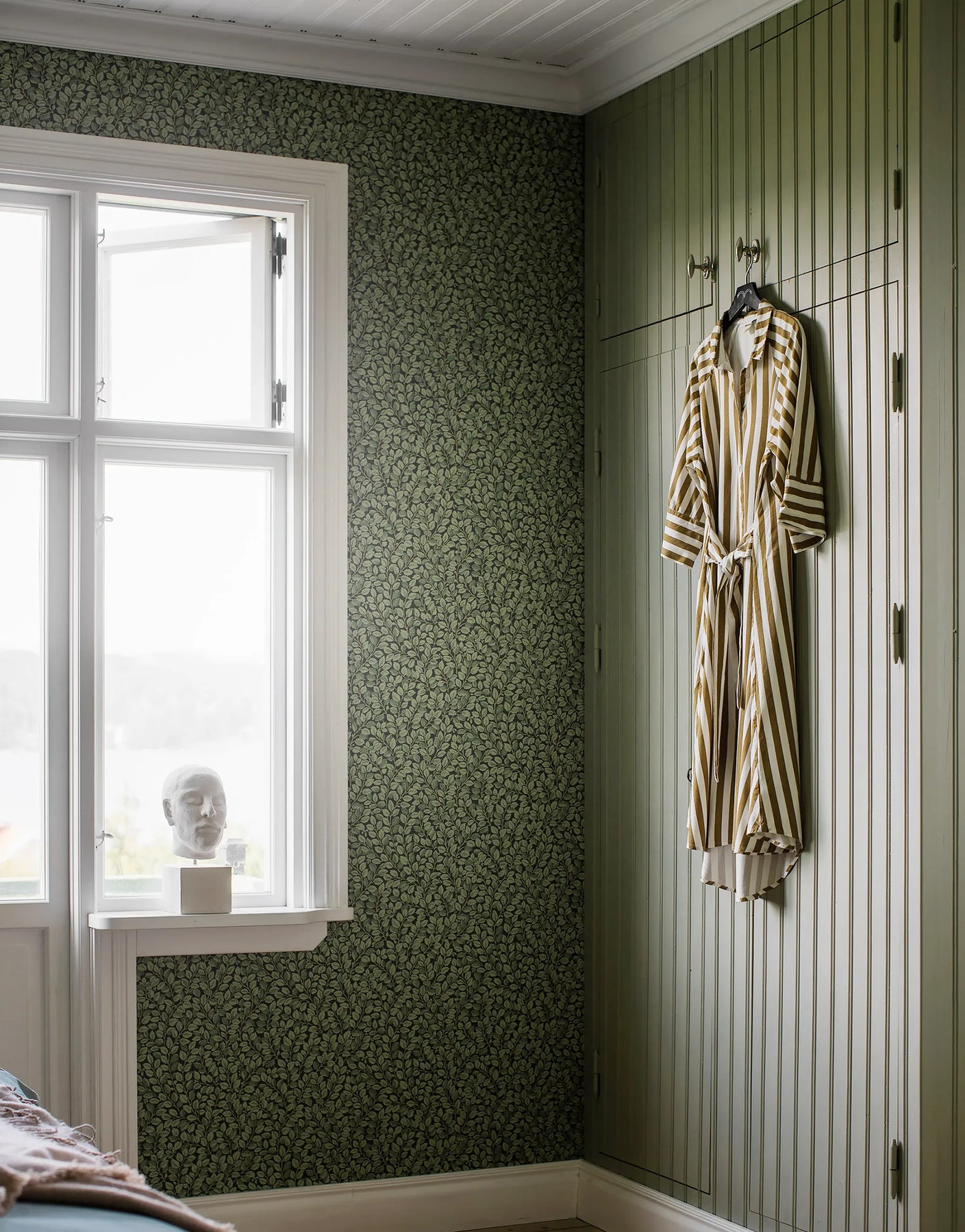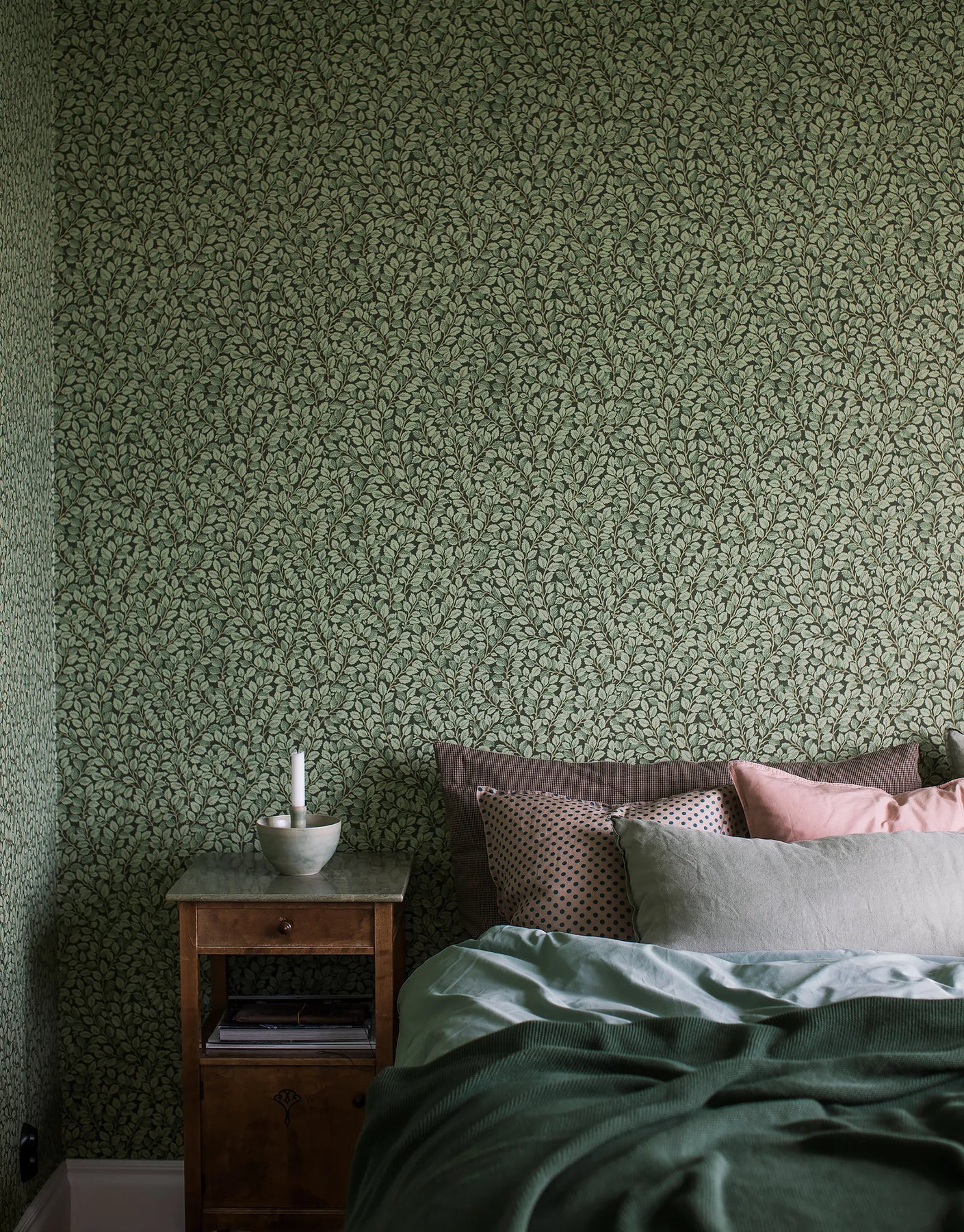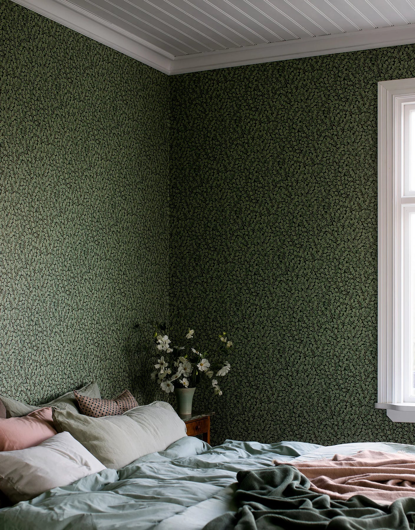 Die Vliestapete Astrid in Grün entfaltet mit ihrem üppigen Blattwerk eine eindrucksvolle Waldstimmung, die zugleich beruhigend und stilvoll wirkt. Dunkelgrüne bis fast schwarze Nuancen bilden ein dichtes, vintage-inspiriertes Laubmuster, das sich wie ein schattiger Waldsaum über die Wand legt. Die taktile Oberfläche verleiht der Tapete eine angenehme Tiefe und lässt die Blätter besonders plastisch erscheinen. Dieser elegante, leicht mystische Look eignet sich ideal für Schlafzimmer, Flure oder Wohnräume, in denen eine warme, geborgene Atmosphäre entstehen soll. Die Kombination aus botanischem Design, gedeckten Farben und subtiler Struktur macht Astrid zu einer stilvollen Wahl für klassische wie moderne Interior-Konzepte.