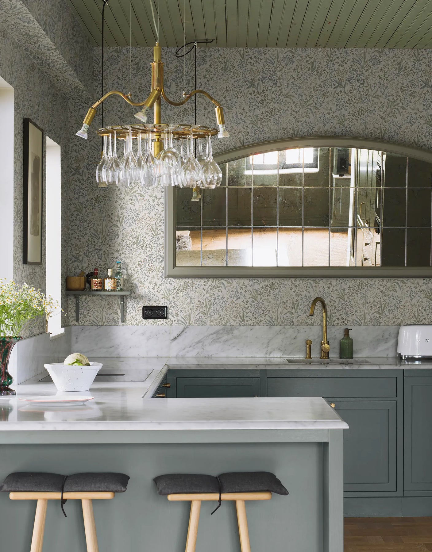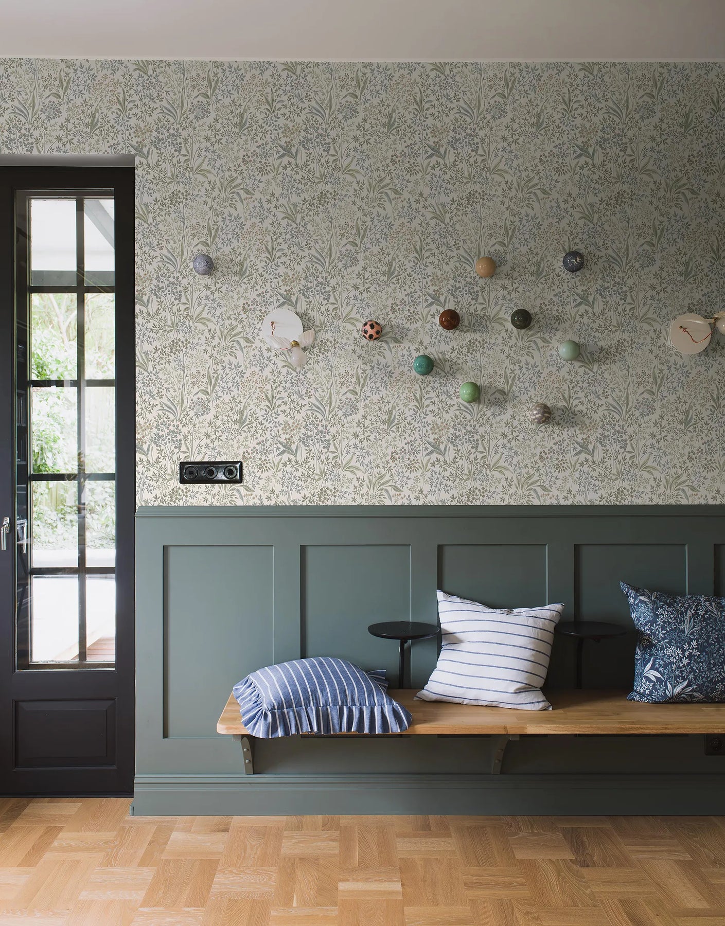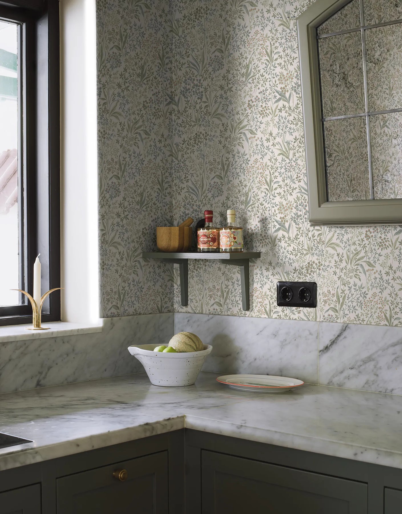 Unsere Alva Vliestapete in Hellgrün überzeugt durch ihr fein gearbeitetes botanisches Muster aus Blättern, Zweigen und Allium-Blüten in zarten Grüntönen. Der weiße Hintergrund bringt die natürliche Farbvielfalt wunderbar zur Geltung. Die matte, glatte Oberfläche erinnert optisch an traditionellen Leimdruck und verleiht dem Design eine handwerkliche, authentische Note. Gefertigt auf hochwertigem Vlies, ist sie langlebig, formstabil und leicht zu tapezieren – perfekt, um eine ruhige, helle Atmosphäre mit skandinavischem Flair zu schaffen.