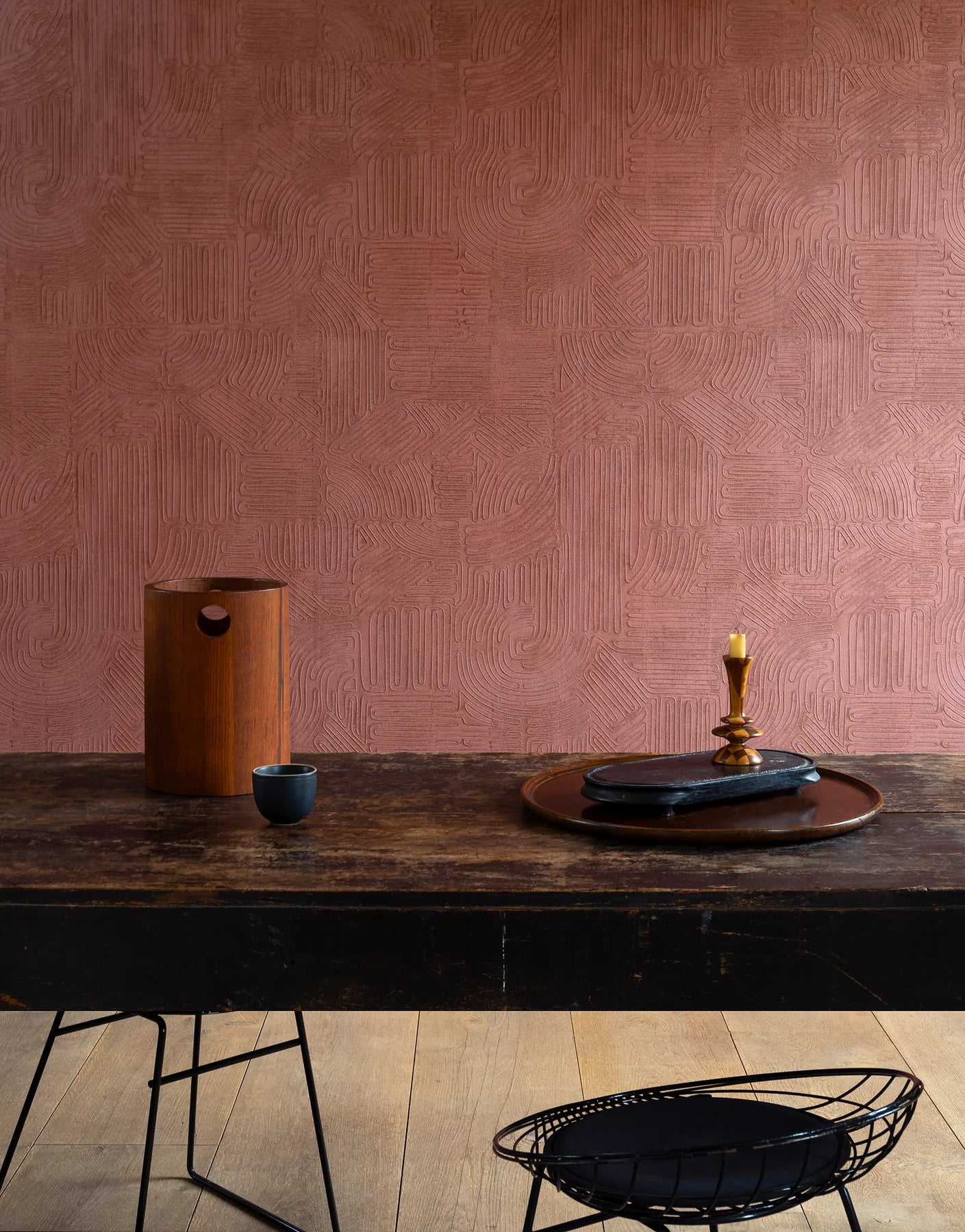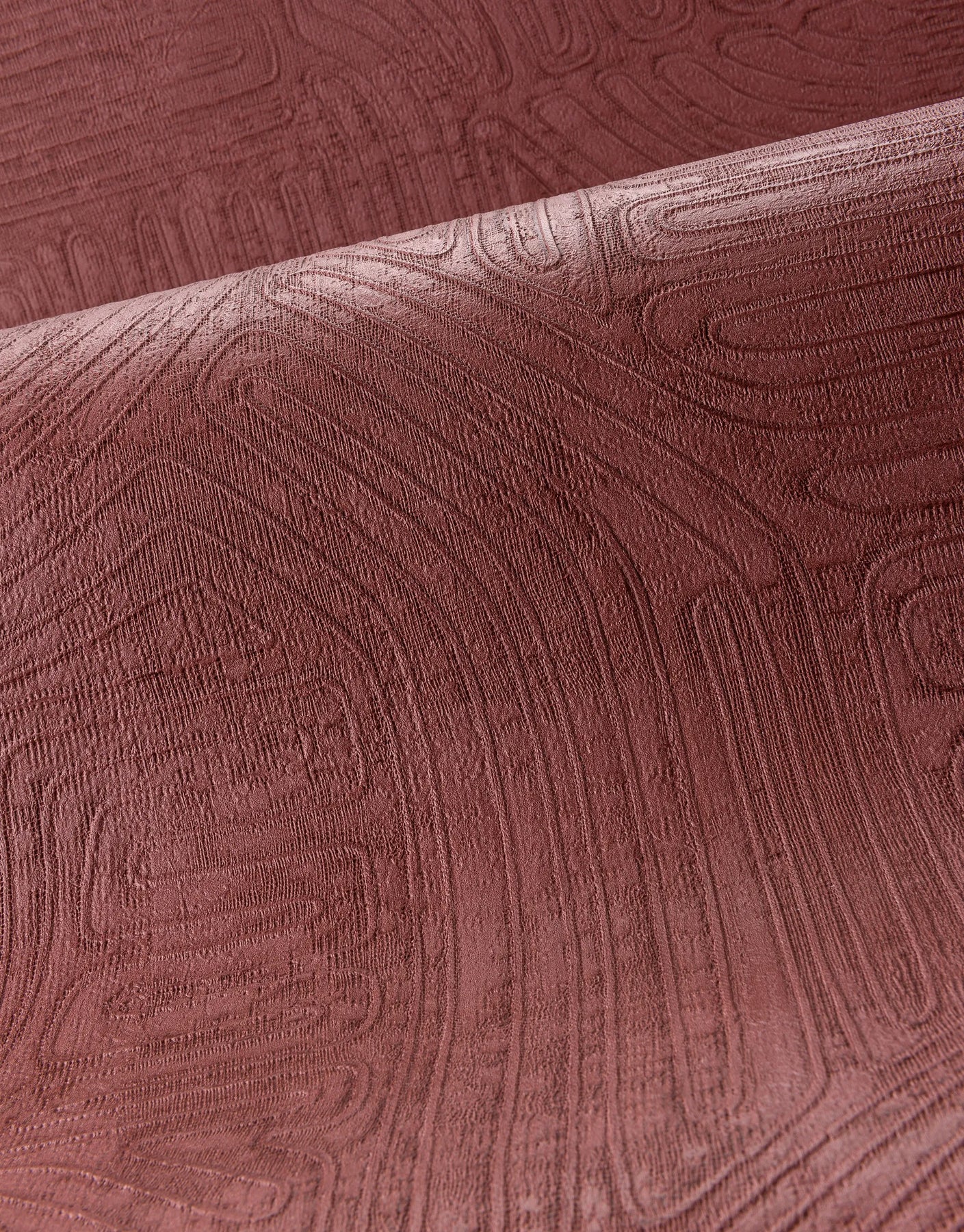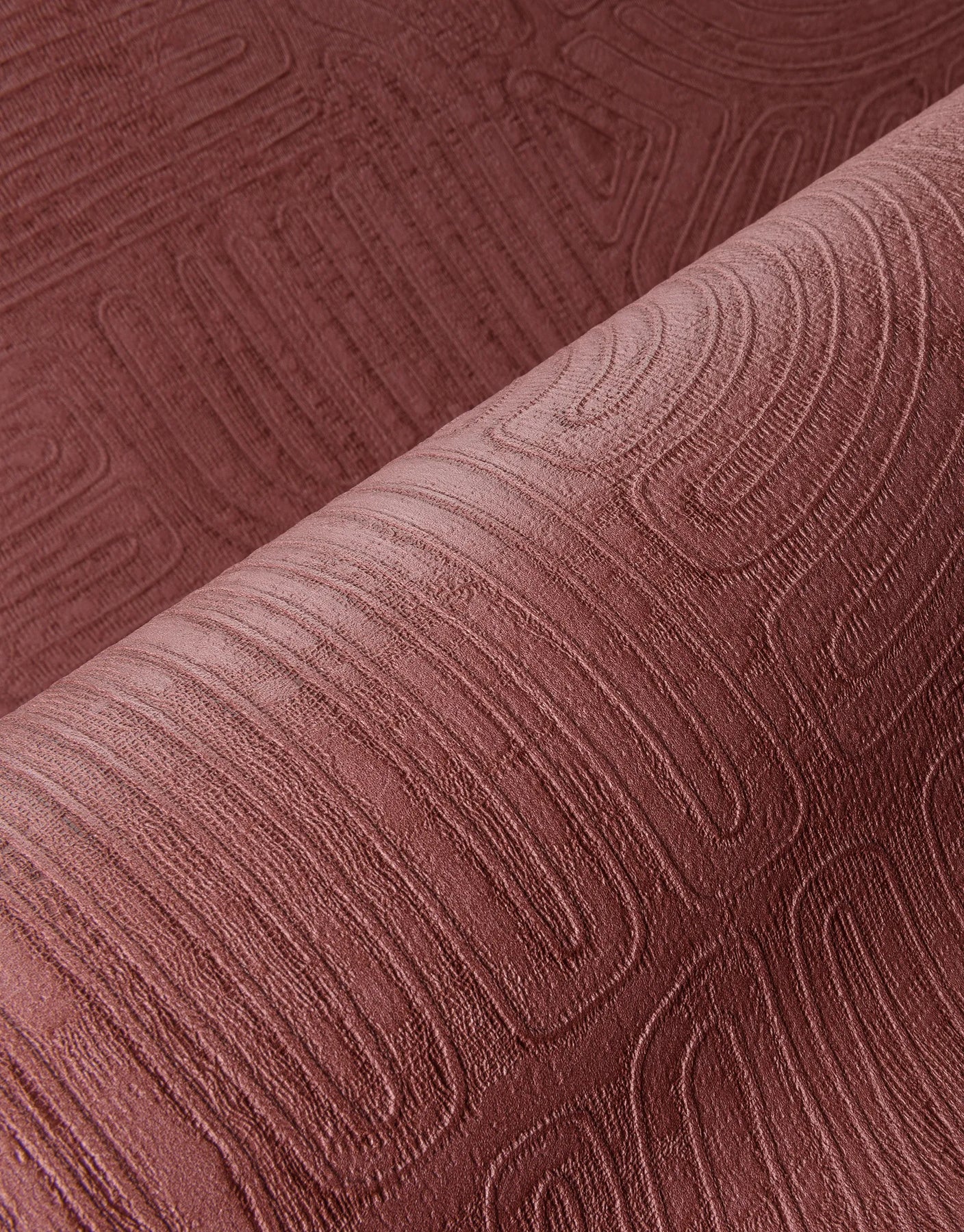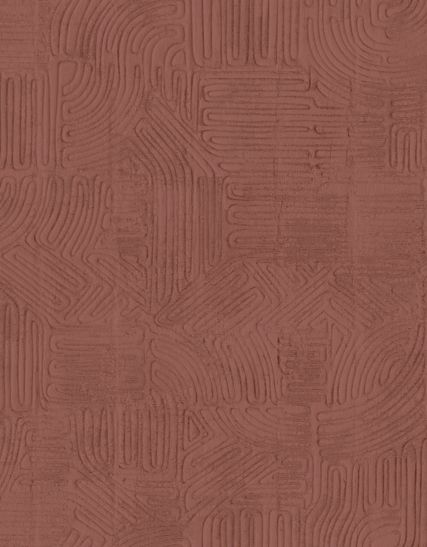 Jakarta Burgundy Rot ist eine exklusive Tapete, die die Kunst handwerklicher Schnurkompositionen auf beeindruckende Weise inszeniert. Die ursprüngliche Gestaltung wird aus hauchdünnen Schnüren von Hand gefertigt und anschließend mit einem feinen, halbtransparenten Gips überzogen, um ein organisch anmutendes, leicht reliefartiges Muster zu erzeugen. Die originalgetreue Vinylreproduktion bewahrt jedes Detail dieser aufwendigen Technik und verleiht der Tapete ihre charaktervolle Tiefe.